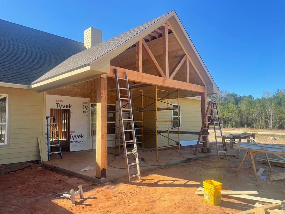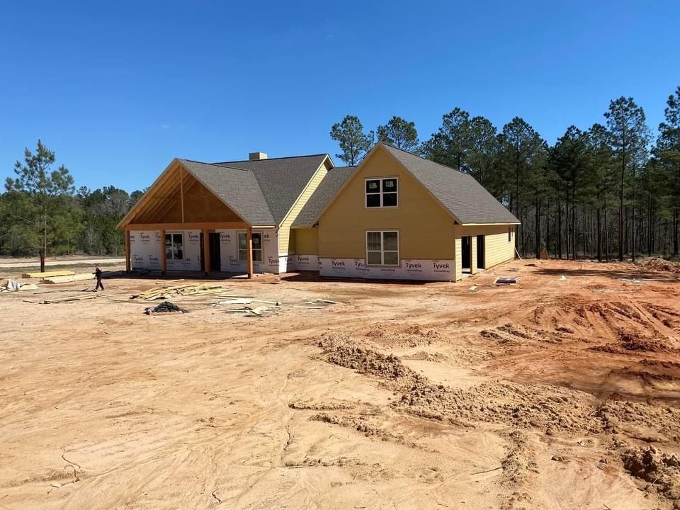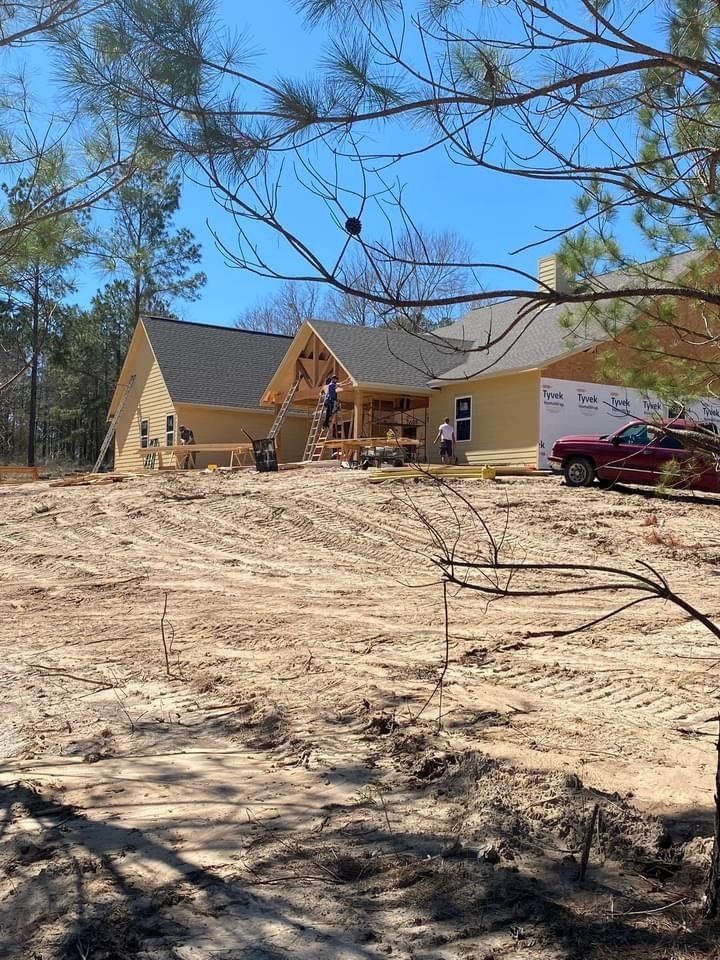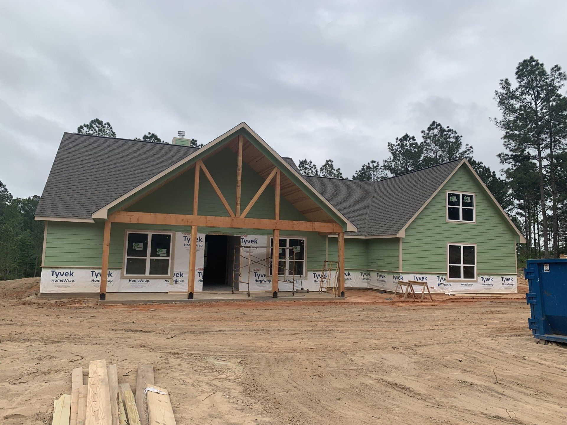 Once framing it completed, we will start the dry-in process. Dry-in on a new construction house means the foundation is poured, the walls are framed, the roofing is completed, the exterior doors, windows & siding are on. This will be the exterior look of this home once dry-in is completed (less the lights.)